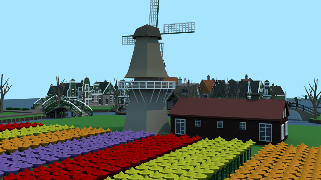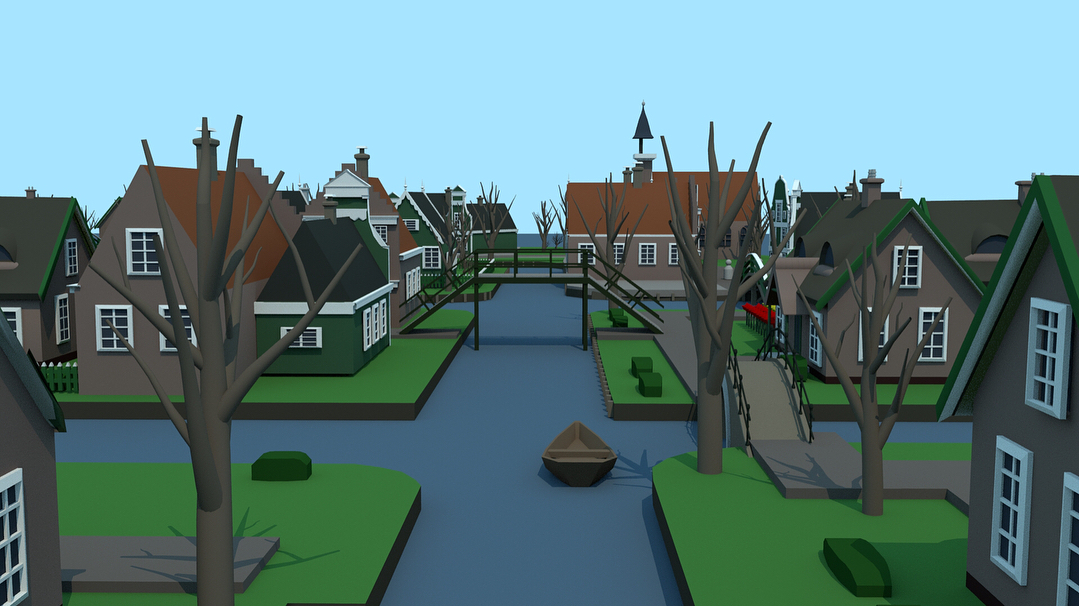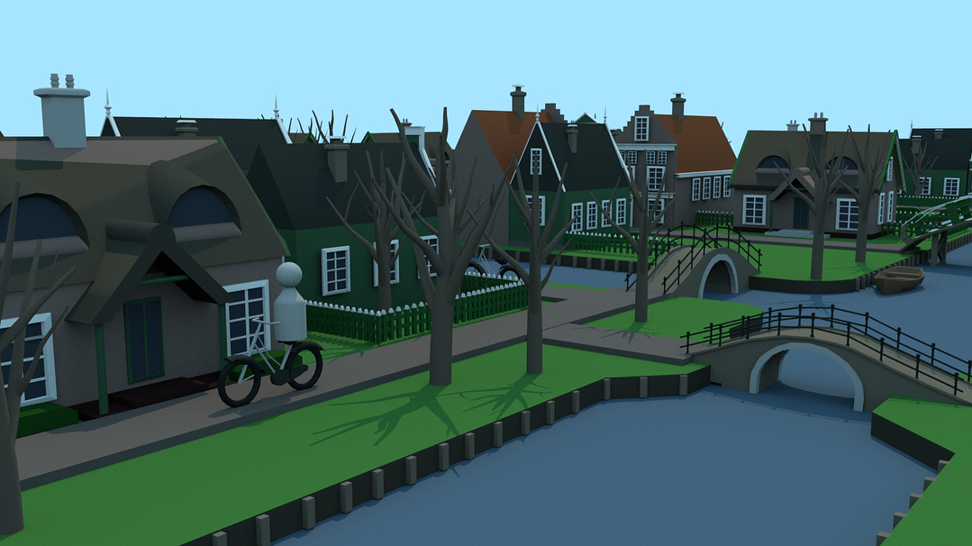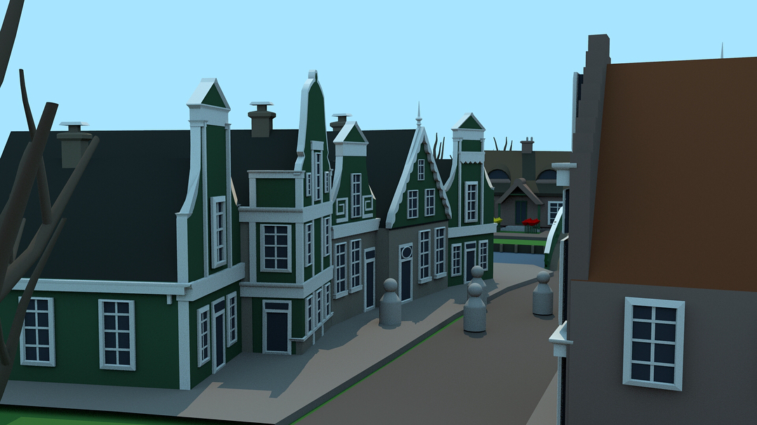 Based on traditional Dutch cities, the environment uses simple shapes and colours to plan out what the scene would look like.