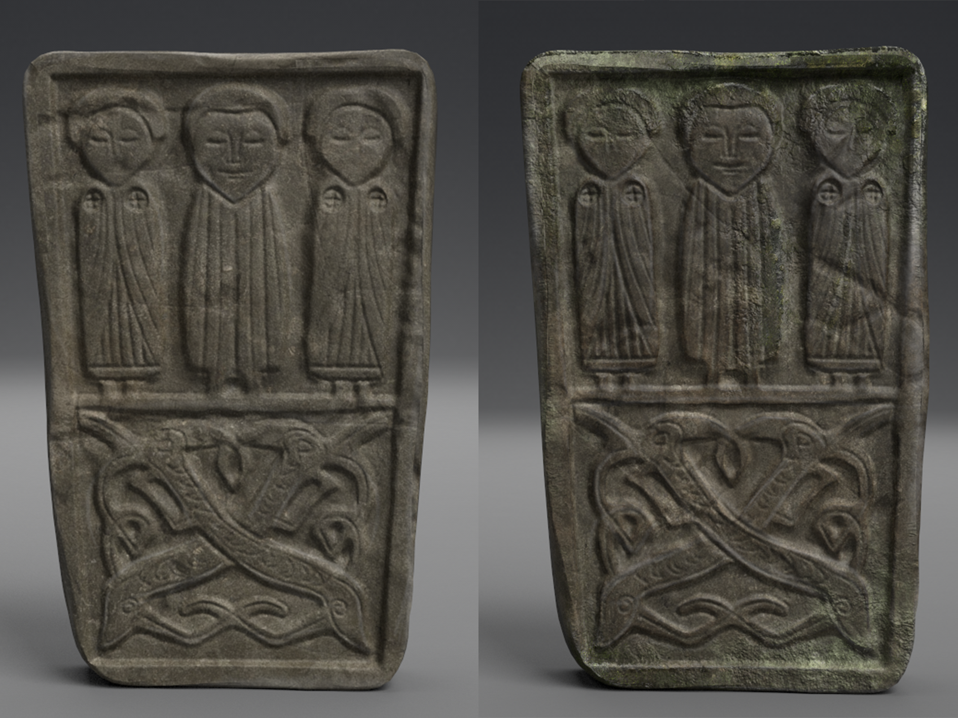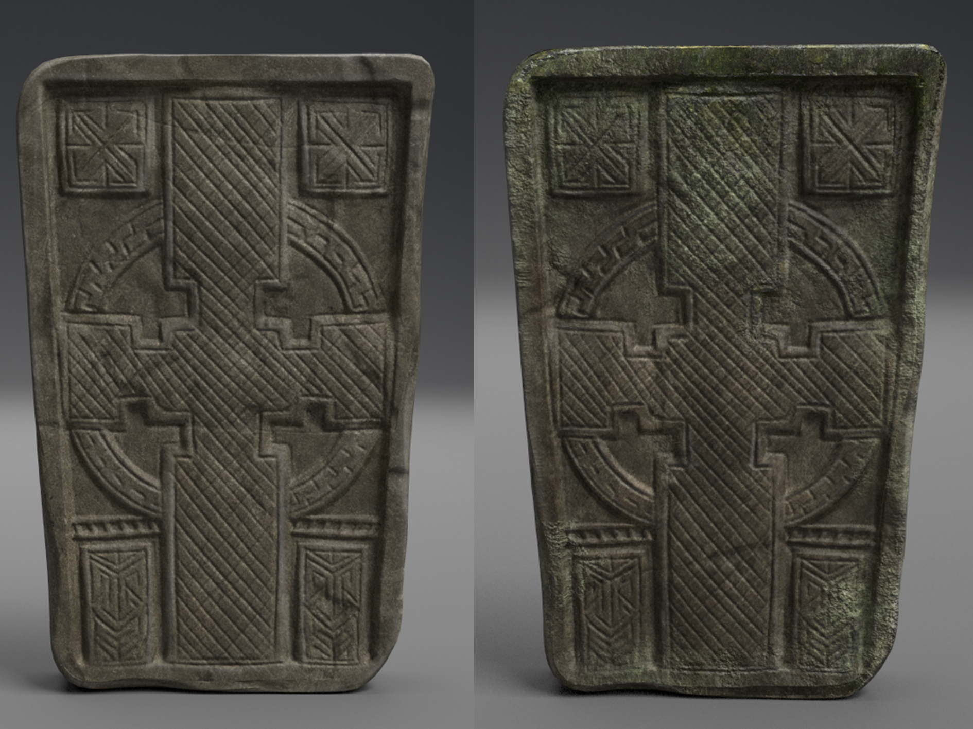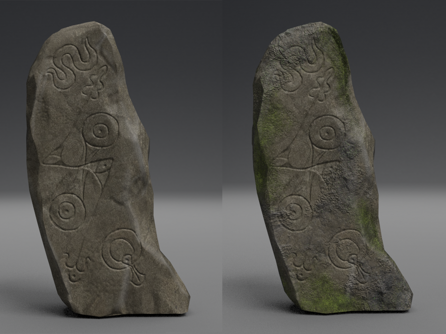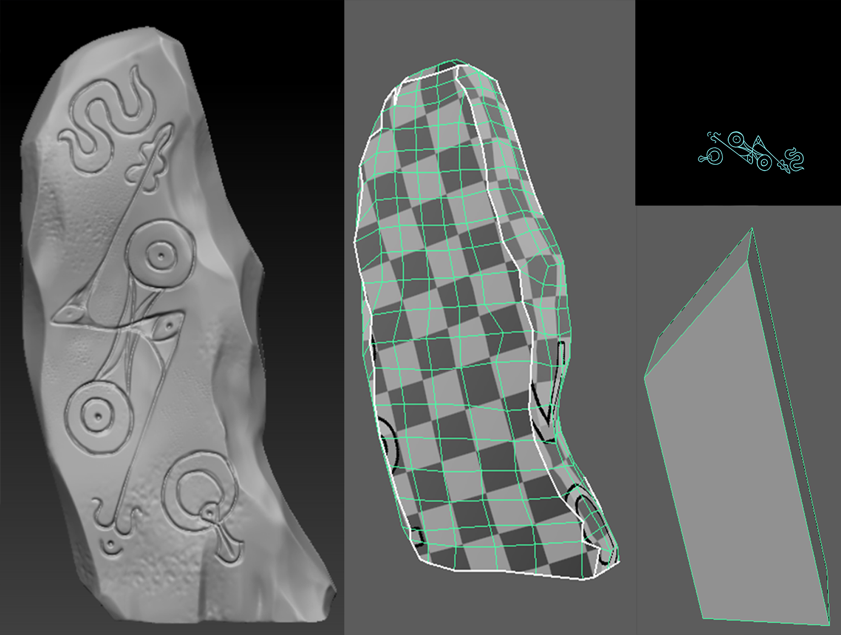 Standing stone high poly sculpt, low poly version, base model and emissive map