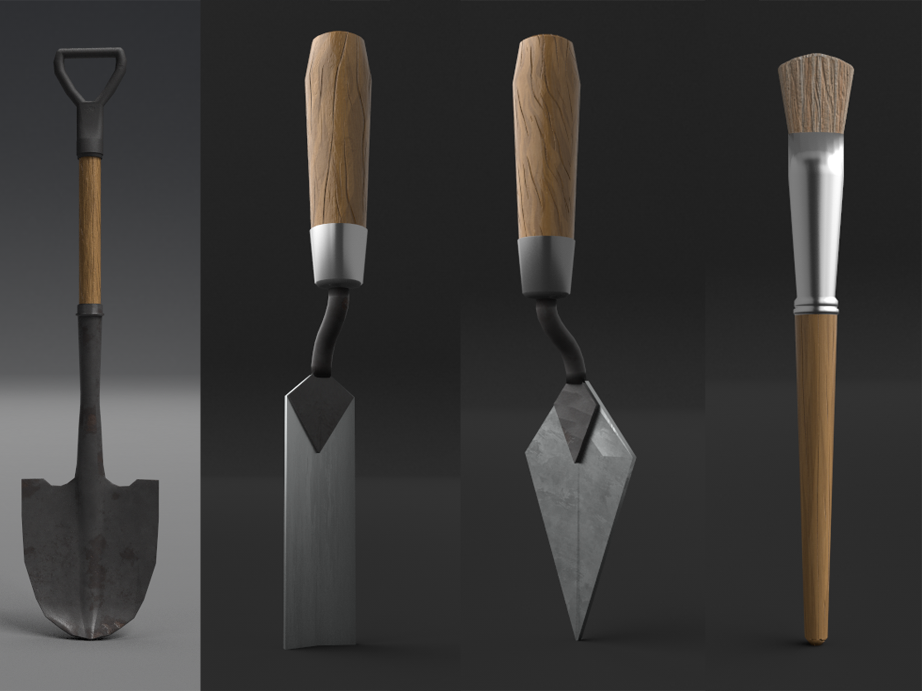 These models are some of the artifacts you can find at the dig site, as well as the tools the player can use during gameplay.